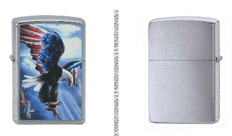 Originální Zippo zapalovač v povrchové úpravě broušený chrom s motivem "Mazzi Eagle America" z jedné strany.